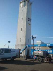 Het opknappen van de Noordwijkse vuurtoren, waarover we het gisterenhadden, is nog niet gedaan. Dat het nodig is, moge genoegzaam blijken uit deze – overigens prachtige – foto van initiatiefnemer, wethouder Martijn Vroom uit Noordwijk.