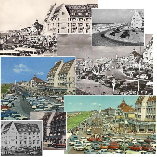 Deze plek is wel een paar honderd keer gefotografeerd en op ansichtkaarten verschenen. Het zou wat zijn om al die foto’s, van de boulevard met het Palace Hotel en die parkeerplaats op een rijtje te zetten. Een chronologisch rijtje. Dat laatste valt alleen al te realiseren door uit te gaan van de afgebeelde auto’s, hun modellen en de jaren waarin ze werden geproduceerd.
