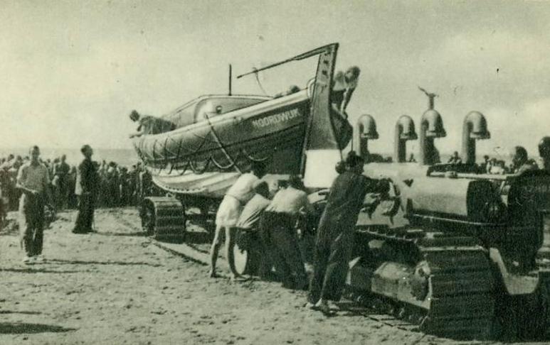 De oude reddingsboot van de KNZHRM, afdeling Noordwijk, de “Kurt Carlsen” is enige tijd geleden van een botenkerkhof op Ameland opgehaald en ter restauratie weer in Noordwijk aangekomen. Met bijbehorende Caterpillar-tractor en Wippertruck. Alles is nu nog volop in restauratie (klik hier voor de mooie site van de stichting “Kurt Carlsen”), maar rond maart 2013 moet alles zo’n beetje zijn afgerond en komt de boot als spiksplinternieuw weer naar buiten.