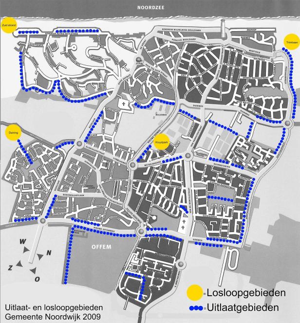 Een plattegrond van Noordwijk met daarop nauwkeurig aangegeven de uitlaat- en losloopgebieden voor de gemiddelde Noordwijkse hond. Het is nog een hele puzzel als je als hond op – pak ‘m beet – de kop van de Schoolstraat woont of in de Kerkstraat. Want hoe moet je dan in de aangewezen gebieden terecht zien te komen? Waar blijft trouwens het recht van honden om gewoon overal te lopen waar ze willen? En dan in Noordwijk, waar de “Partij van de Dieren” (of is het “voor” de dieren?) toch een dikke 1.9% van de stemmers trok bij de laatste verkiezingen. De hele dag opzitten en pootjes geven, maar ondertussen wel op de angstig gebaande paden moeten blijven. En het oude centrum van Binnen en van Zee is helemaal taboe. Je mag helemaal niet in de Schoolstraat of de Kerkstraat wónen!