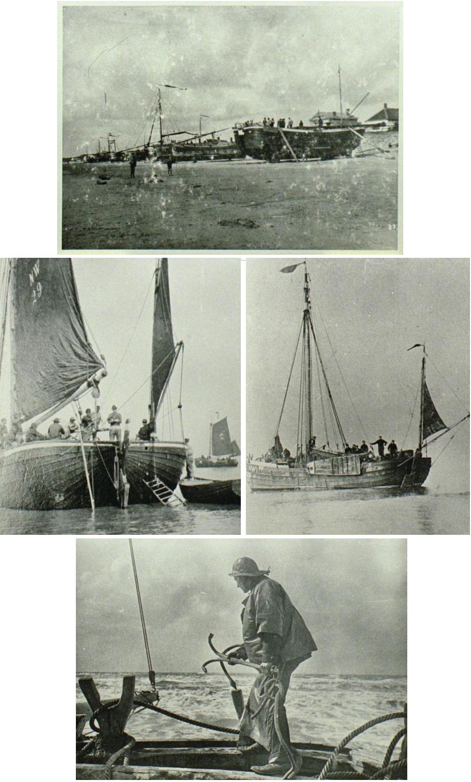 Dit zijn allemaal foto’s van Noordwijkse bomschuiten aan het Noordwijkse strand. Op de bovenste foto lijkt de Noordwijkse vloot gereedgemaakt te worden voor het nieuwe seizoen. Of het seizoen is afgelopen en de schuiten worden geprepareerd voor de overwintering in het Schuitegat. Dat kan ook.