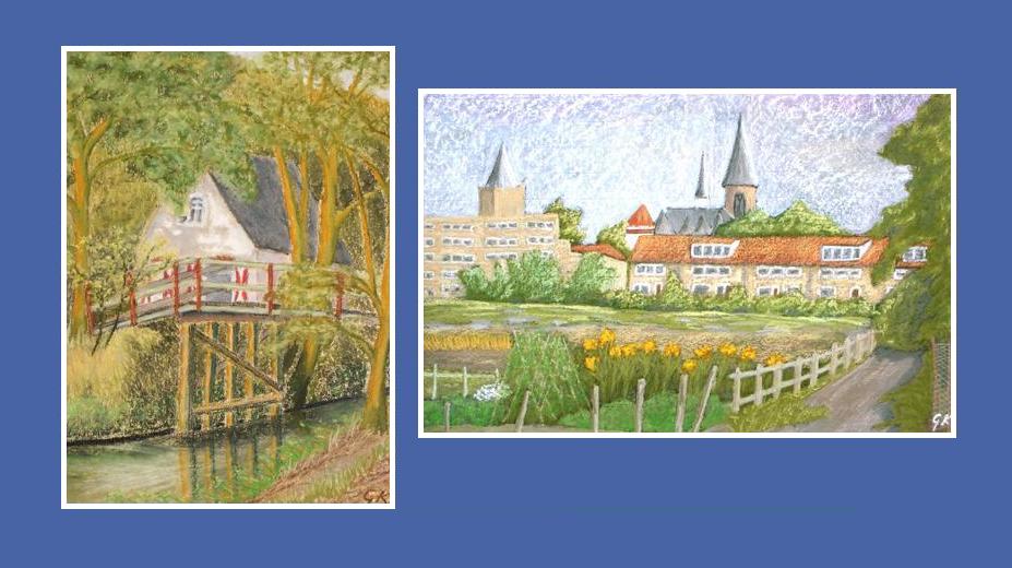 Guus Kuijs uit Overasselt heeft in de afgelopen 25 jaar zo’n 200 pastels en aquarellen gemaakt. Die heeft hij gepubliceerd op zijn website. Met twee oliepastels van Noordwijk uit 1993: links een huis aan de Woensdagse Watering en rechts een gezicht op Noordwijk-Binnen.