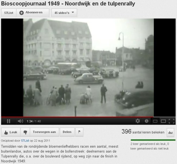 Het filmpje is geplaatst op YouTube door de onvermijdelijke Li-st . Het laat beelden zien uit het bioscoopjournaal van de Tulpenrally van 1949. Het is meer tulp dan Noordwijk, maar de sfeer is mooi en – hoewel van voor mijn tijd – toch nog een beetje herkenbaar en hervoelbaar, als dat laatste een Nederlandsch woord is.