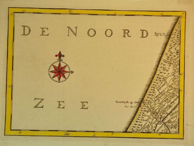 De kaart dateert van 1750 en vormt onderdeel 5 van de veel grotere wandkaart van Holland en Utrecht, uitgegeven door R. en J. Ottens te Utrecht. De uitsnede heeft wel iets surrealistisch. Het is een kaart ‘van de kustlijn van de Noordzee bij Noordwijk’, maar daarmee is alles dan ook gezegd en geschreven. Zoveel informatie biedt de kaart niet, anders dan een nauwkeurige topografie van één grote watervlakte.