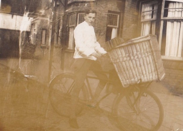 Als hij tijd van leven had gehad, was hij vandaag 95 jaar geworden. Maar vader werd ‘maar’ 81 en haalde de eeuwwisseling niet meer. Dit is een foto uit zijn jonge jaren, als bakkersknecht bij Jan Elsgeest uit de Kerkstraat – naar verluidt altijd fluitend – het dorp doorcrossend met een ouderwetse bakkersfiets en dito broodmand. De hoek van Zeestraat en Molenstraat, ergens medio jaren-dertig.