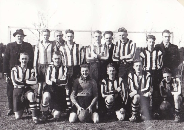 En onder: een foto van het tweede of derde van SJC, waarin hij als keeper – naar verluidt altijd fluitend – de moeilijkste ballen tegenhield en de gemakkelijkste liet glippen.