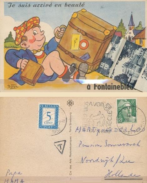 Martijn moet het allemaal niet prettig gevonden hebben. Hij wás al door zijn ouders achtergelaten in een pension in Noordwijk en ze wáren al weggegaan naar Fontaineblau. Stuurden ze wel een kaartje, maar hadden ze daar een postzegel van maar 6 luttele oude franken op gedaan. Te weinig vond de postbeambte in Noordwijk-Binnen en hij diende de rekening van 5 luttele oude centen onverbiddellijk in bij Martijn himself. Het kind moet zich meer in de aap dan in Sonnevanck gelogeerd hebben gevoeld.