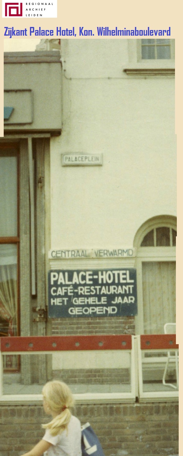 “Het gehele jaar geopend” en “centraal verwarmd” stond er nog op tot ver in de jaren zeventig. Het plein was naar het hotel genoemd en niet andersom, maar het straatnaambordje doet een beetje ielig aan op die hele grote gevel.