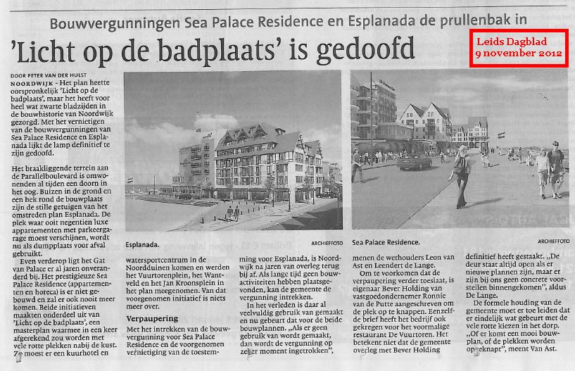 Het plan heette “het Licht op de Badplaats”, maar het licht is nooit aangegaan. Zoveelste kortsluiting op deze ‘schaamste aller schaamplekken’. Het is niet anders en de tijden zijn er niet naar om hier nu grote luxueuze gebouwen neer te zetten. Maar als de crisis ooit nog overgaat, komt het misschien nog wel goed met deze plek. Hopelijk hebben gemeente en projectontwikkelaar tegen die tijd – eindelijk – overeenstemming bereikt. Nog beter: doe als de Gemeente Leiden en haal (koop) deze projectontwikkelaar weg van hier. Misschien dat het dan met deze schaamplek ook gelijk over is. After all these years.
