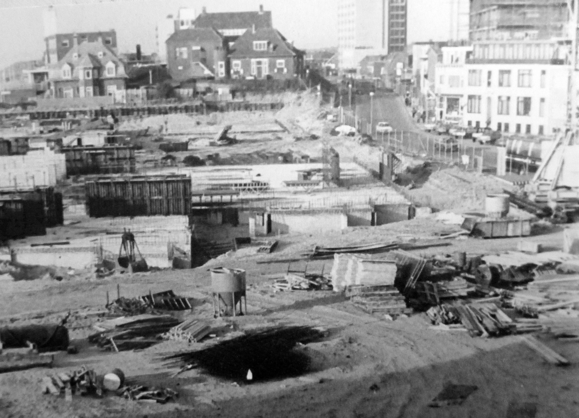 Ik krijg naar aanleiding van het vorige blog deze foto aangereikt. Het is 1976 en in dat jaar zou een begin worden gemaakt met de bouw van het zgn. ‘Heemborgh-complex’ op deze plek. Dat complex – hoewel bij de oplevering al gedateerd – kwam er. Als dat niet het geval was geweest, was het nu waarschijnlijk nog een open plek geweest. Het beeld waarschuwt tegen onmacht en willekeur en laat zien wat beide begrippen vermogen, als ze de overhand krijgen boven doorzettingsmacht en goede smaak (met dank aan Michel).