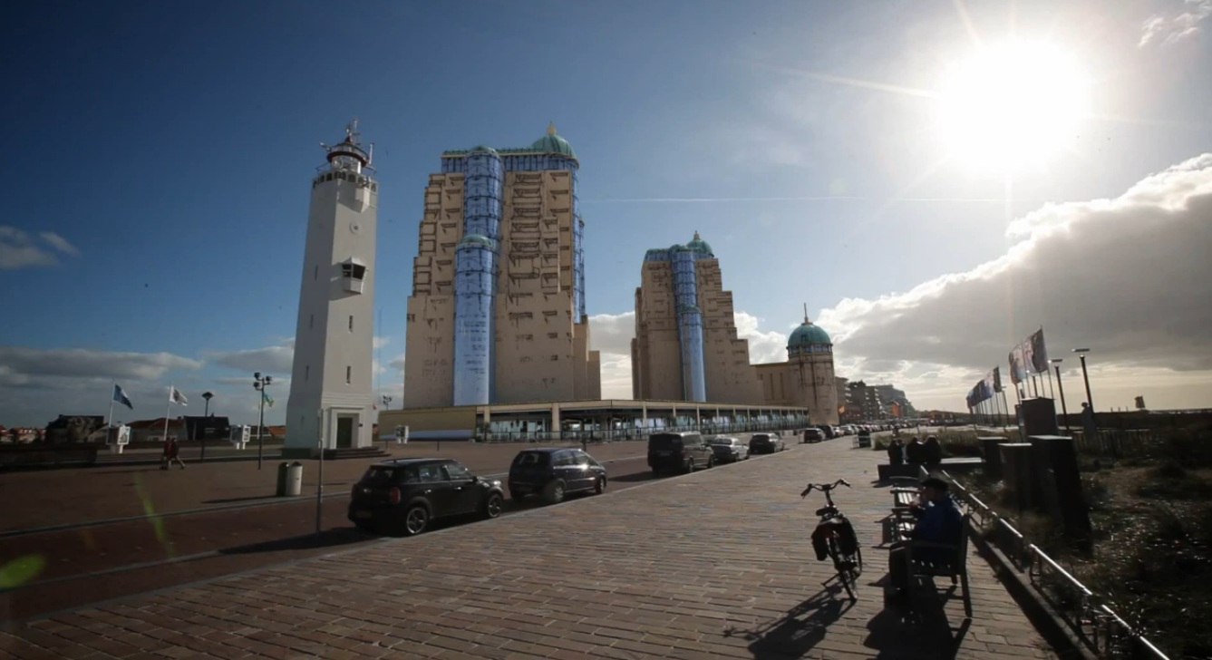 Je kunt tegenwoordig met behulp van computeranimatie een hoop mooie beelden creëren, maar gelukkig blijft het in dit geval bij een virtuele werkelijkheid. De Hotels van Oranje hebben plannen voor de bouw van twee postmodernistische mastodonten, die hun weerga in Noordwijk niet zullen kennen. Hoe komt – zo vraag je je af – iemand op het idee om dit te ontwerpen? Spierballenarchitectuur, ontsproten aan megalomane breinen. Er moet wat gebeuren op die plek, maar projectontwikkelaars en architecten zouden wel een paar etages lager mogen zingen.