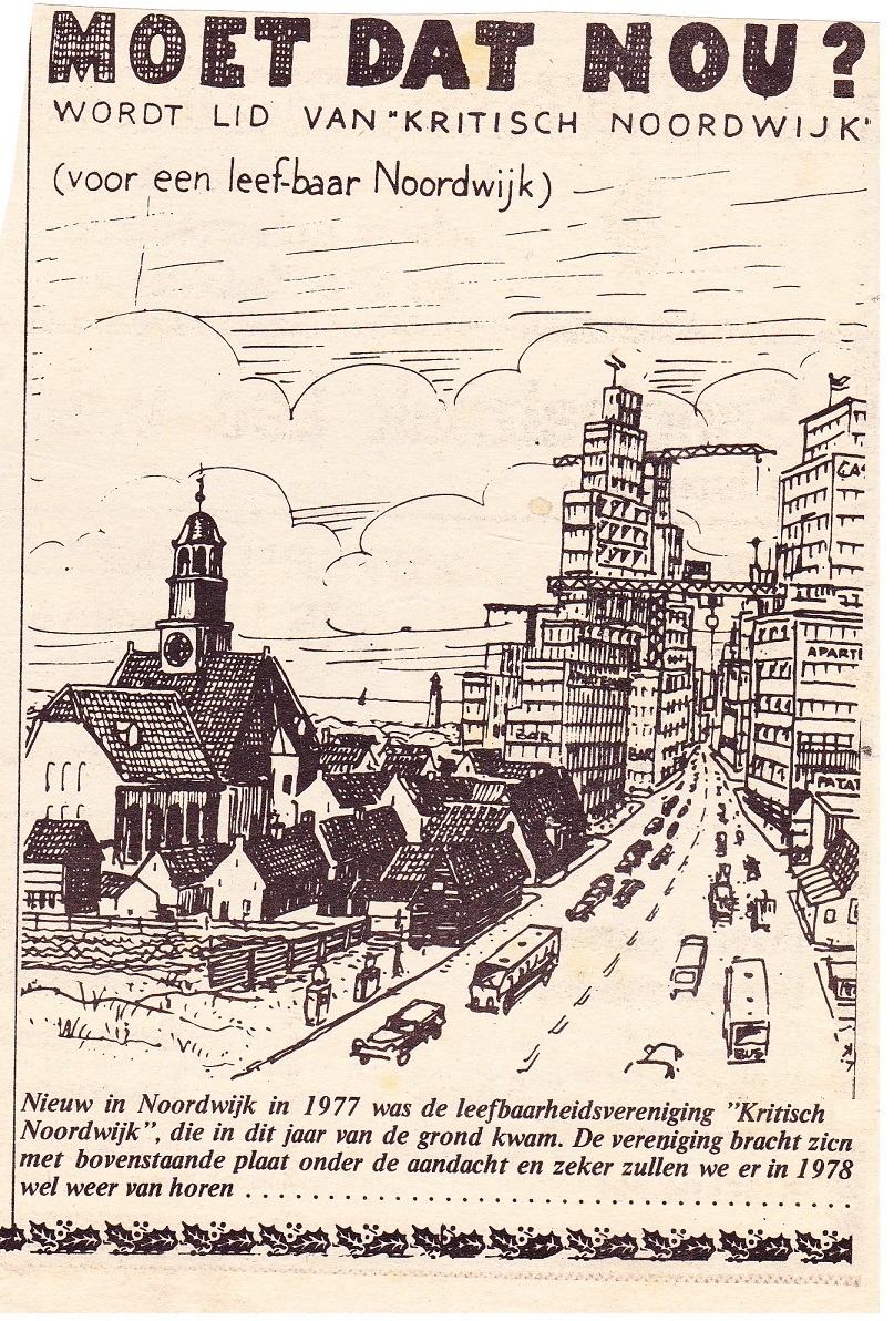 Dat is lekker dialekties van je gedacht Klaas, I love that! En ik lees ook een mooie paradox in je verhaal: juist het Noordwijksche conservatisme heeft geleid tot de teloorgang van alles waarin Noordwijk groot en groots was. En verders: in 1977 was er blijkbaar ook al reuring genoeg in het ouwe durp, maar als je ziet waar ons dat nu gebracht heeft…………. Ik had ‘Kritisch Noordwijk’ meer invloed toegewenscht.