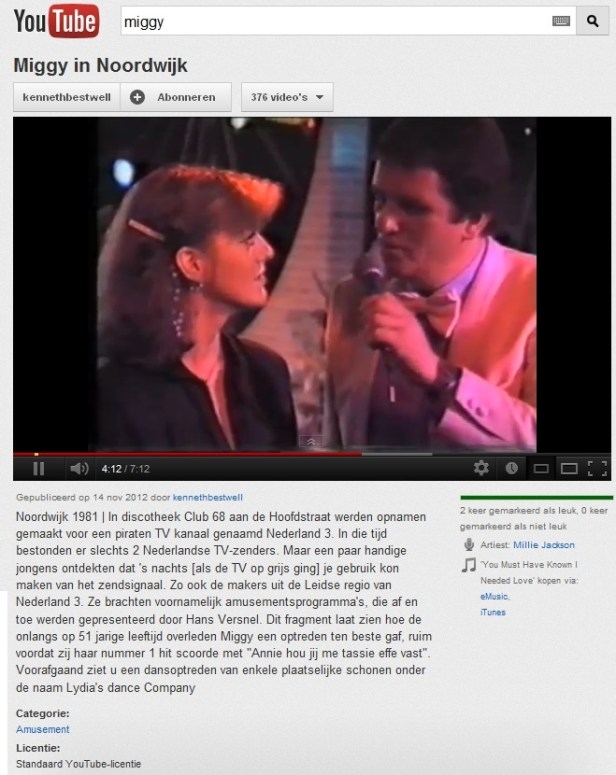 Op 7 november jl overleed zangeres Marina van der Rijk, beter bekend als Miggy. In het begin van de jaren tachtig had ze een grote hit met de evergreen “Annie, Hou jij m’n tassie effe vast“, een lied waarmee ze zelfs de megasterren van Abba van de hitlijsten verdreef.