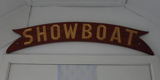 Het bord hierboven is nooit gestolen, maar rechtmatig verkregen door de huidige eigenaar, die er een plek voor heeft ingeruimd op de overloop van zijn doorzonwoning. Het bord ‘Showboat’ is origineel en afkomstig van de Showboat-bar in het voormalige Casino in Noordwijk. Rudiment uit een roemrucht verleden, net zoals de brugleuning in de Pickéstraat en de gevelsteen aan de Offemweg. Ik was niet zo’n Casinoganger, maar generaties Noordwijkers moeten in de Showboatbar een biertje, een sherry, vermouth of bessenjenever hebben besteld onder de aanblik van dit prachtige bord, dat ooit misschien wel door een ambachtelijke Noordwijkse timmerman gemaakt is en met zorg in de verf en de vernis gezet. Het bord heeft aldus niet alleen de bar, maar ook het Casinocomplex in zijn geheel overleefd.
