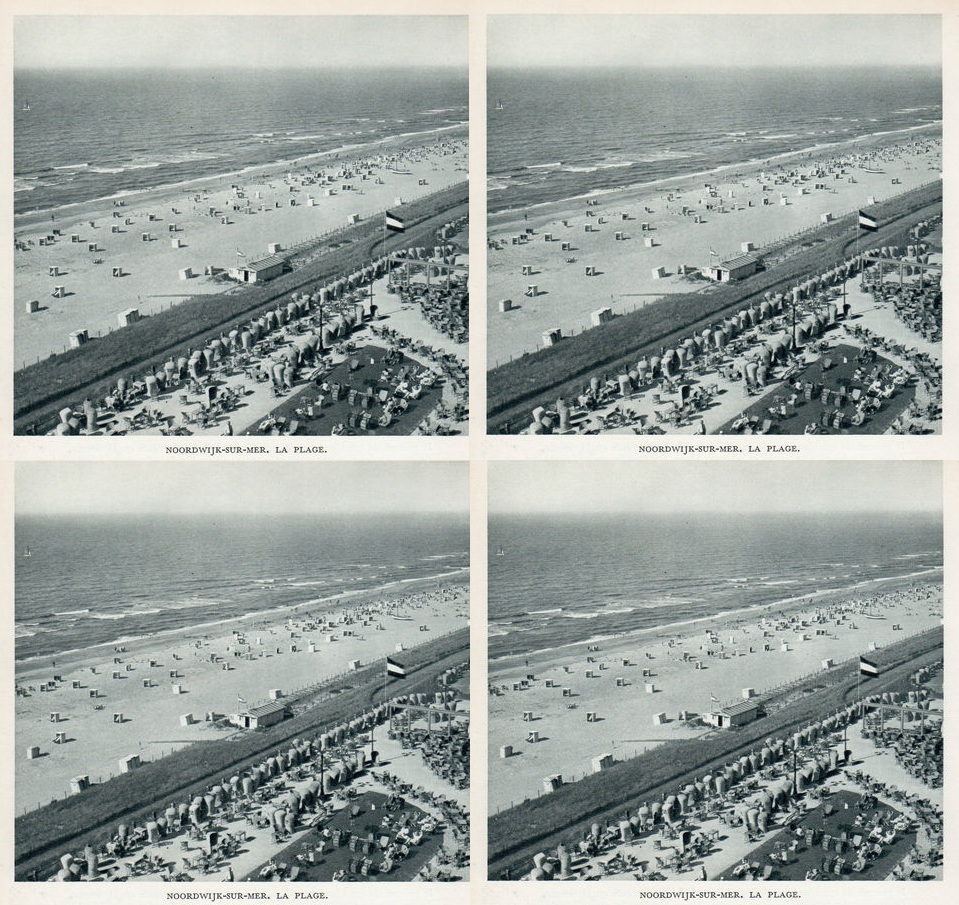 De foto komt uit een boek, maar op internet wordt niet vermeld uit wélk boek. Dat is jammer – je komt wel meer van dit soort van slordigheden tegen op internet (ook in dit blog 🙂 ). Ik neem aan dat het om een Franstalige reisgids ging voor de Pays-Bas, waarin de lezer/reiziger – terecht – ook op een foto van Noordwijk werd getracteerd. Mais naturellement!