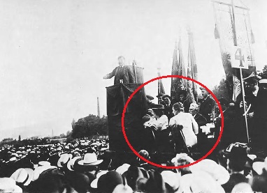 Liebknecht en Luxemburg waren goed bevriend met Henriette Roland Holst, het schuchtere dichter-meisje uit Noordwijk dat in het socialisme ontbolsterd was geraakt. Op deze foto staan Rosa Luxemburg en Henriëtte Roland Holst naast elkaar op het podium (Jet met de rug naar de camera) tijdens een vergadering van de Tweede Internationale in Stuttgart in 1907.