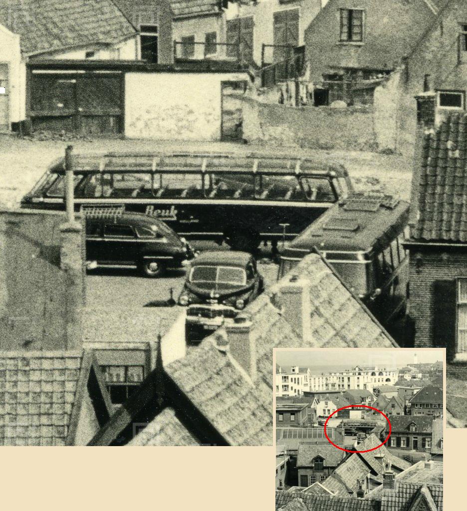Ik herinner me nog wel dat je het wagenpark aan touringcars en luxe auto’s van de firma Beuk terug kon vinden in het kruip-door-sluip-door-buurtje nabij het Jan Kroonsplein. En dat ik me toen al verwonderde over het feit dat zulke grote bussen blijkbaar door zulke kleine straatjes konden rijden. Dat een zichzelf respecterende transportfirma als die van Beuk zich überhaupt in dit buurtje ophield. Maar alles was blijkbaar geen probleem.