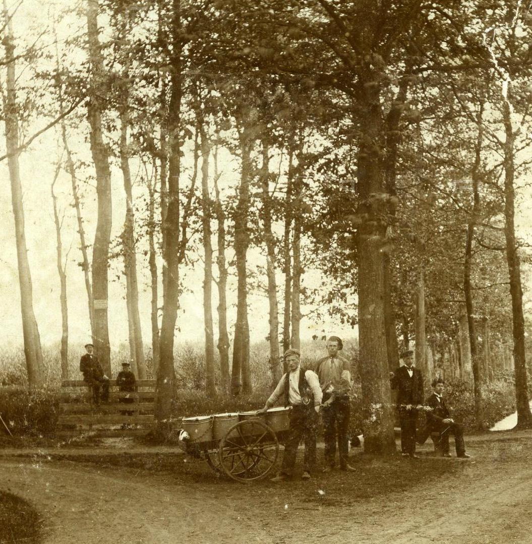 Het is wat mij betreft een surrealistische foto. Het bijschrift van het Regionaal Archief Leiden en Omstreken luidt: Nachtegaallaan in het Varkensbos, rond 1900. Ik heb die combinatie van varkens en nachtegalen altijd al een vreemde gevonden – heeft ook iets surrealistisch.