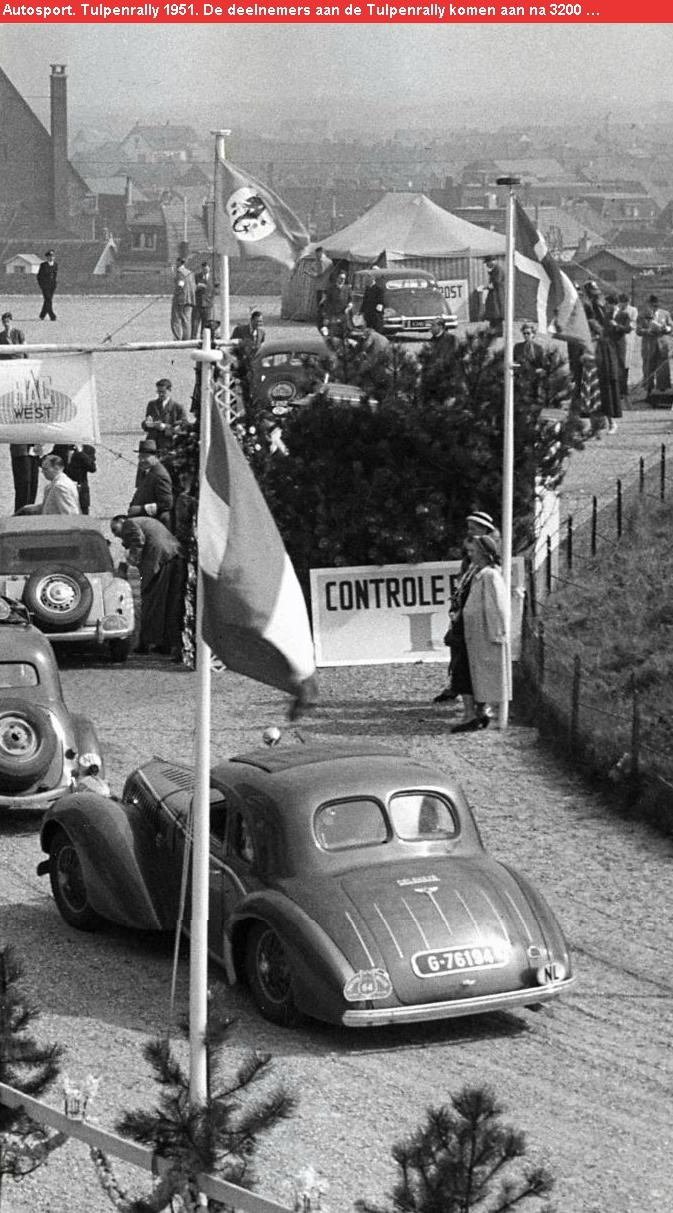 De foto komt uit de prachtige collectie van het Nationaal Archief/De Spaarnestad en toont de aankomst van de Tulpenrally in Noordwijk in 1951. Vooral die achterste auto is een geweldige. Volgens bijschriften zou het een Delahaye 135 Coupé zijn uit 1939. Maar als ik daar op google, komen er hele andere auto’s in beeld. Kortom: wat voor auto is dit?