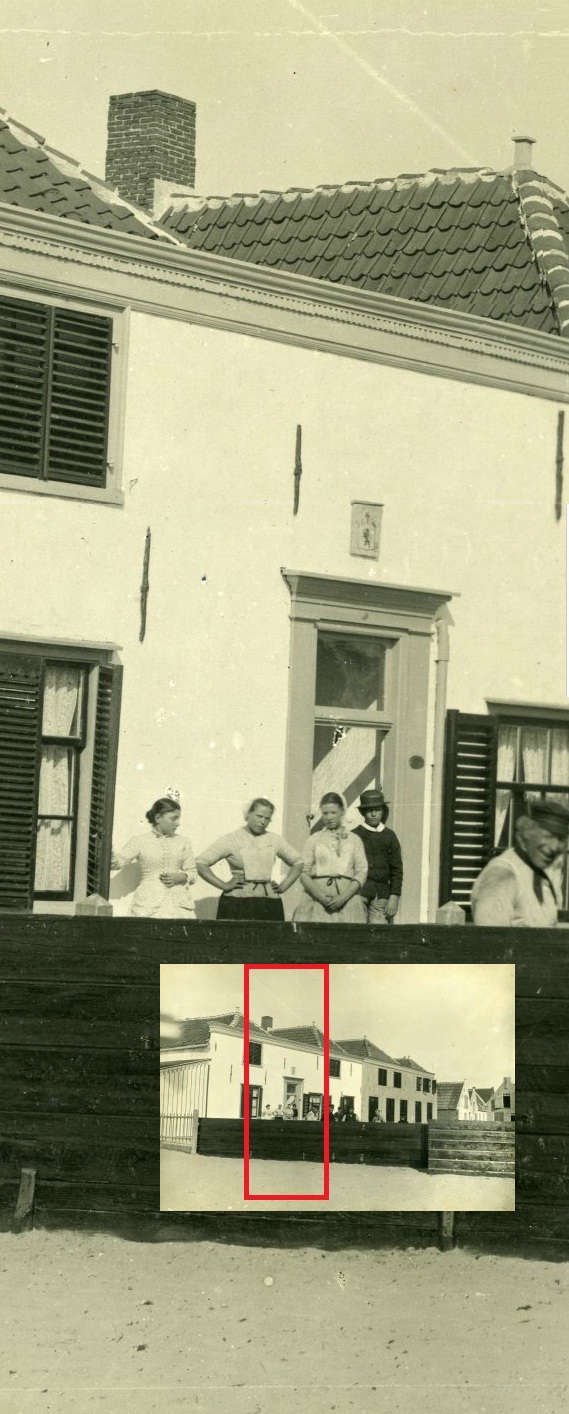 Het ziet er allemaal spi-en-span uit, restaurant-pension-hotel Van Konijnenburg aan de boulevard van Noordwijk. Een eerste toeristische nering, die Noordwijk omhoog moest stuwen in de vaart der volkeren (wat gedurende enige tijd bepaald succesvol verliep!). Het is 1890, we weten niet wie mensen – jongelui nog – op de foto zijn. Ze staan in de deuropening met halftoegeknepen ogen tegen de zon in te kijken. Een schutting die het opstuivende zand moet weghouden van het achterliggende Calisplein. Boven de deur een tegeltje met het wapen van Noordwijk erop. Mooi om hier een paar dagen te verblijven met volle pension. In 1890.