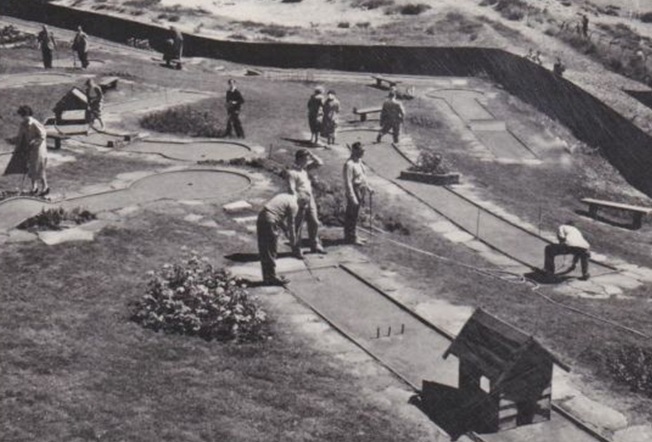Het is een beeld van de midgetgolfbaan naast restaurant Seinpost aan de Noordboulevard van Noordwijk aan Zee. Je zou denken: wat een ukkig baantje. Of: wat mot ik met zo’n nogal statische zwartwit foto. Of: je bent pas een Noortukker als je hier ooit een balletje geslagen heb (ik niet trouwens). Of in het algemeen: wat moet ik hiermee an?