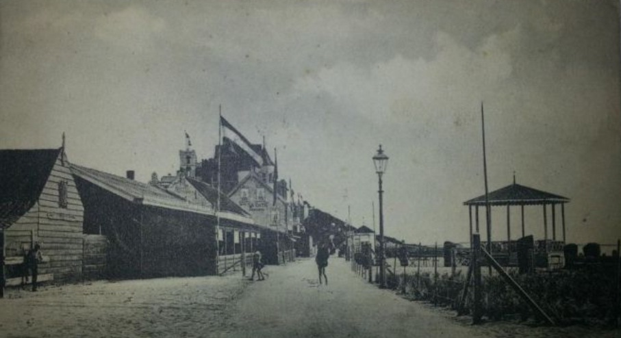 Een slechte scan, maar wat mij betreft een redelijk uniek beeld. Een ‘Nauta-kaart’ die ik nog niet eerder gezien heb. Wie durft een inschatting te maken van de datum van deze foto: we zien op de achtergrond al wel Pension Cato en de Villa Seehorst, Huis ter Zee staat er ook al op en de kiosk van Dorsman. Ik houd het op 1905 of daaromtrent, maar geef mijn inschatting voor iedere betere.