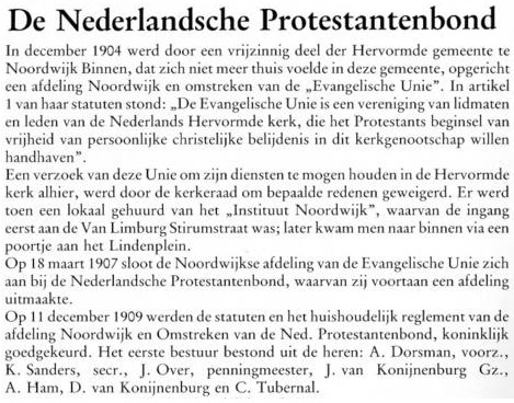 De Noordwijkse afdeling van de Protestantenbond lijkt niet meer te bestaan. Voor zover ik het kan traceren moeten er ‘na het Lindenplein’ nog enige tijd bijeenkomsten zijn gehouden in de aula van de Algemene Begraafplaats aan de Oude Zeeweg. Maar ook die bijeenkomsten zijn er niet meer. De Noordwijkse afdeling lijkt alleen nog maar een postadres te hebben of te zijn ergens aan het Dobbelmannduin.