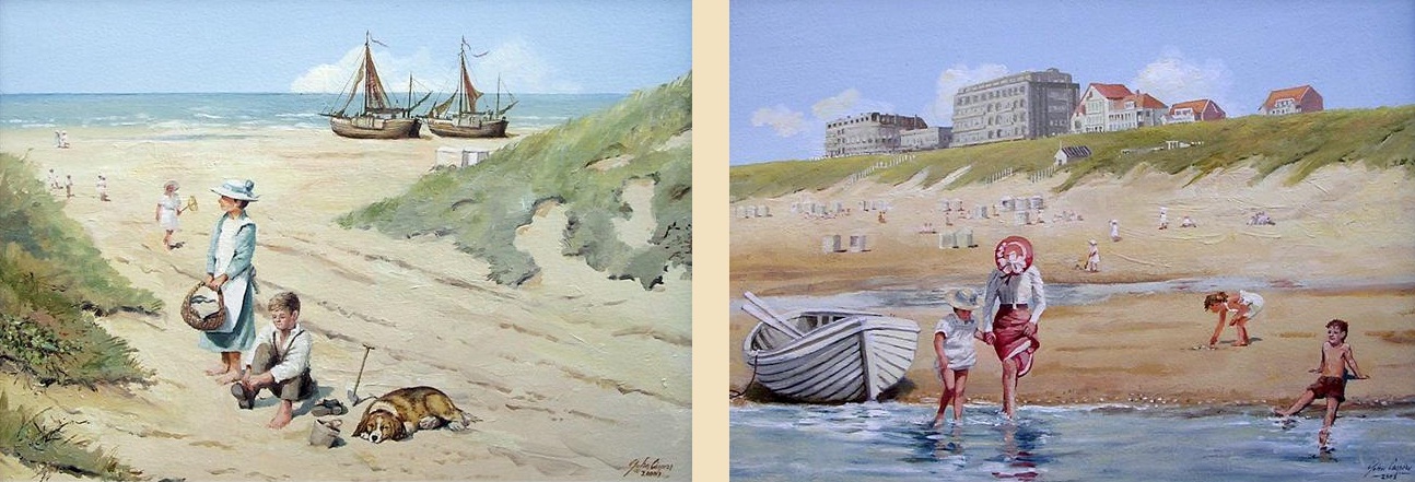 Twee prachtige olieverven van de (Noordwijkse?) kunstschilder John Caspers. Te koop bij ArtBoutique in Noordwijk.
