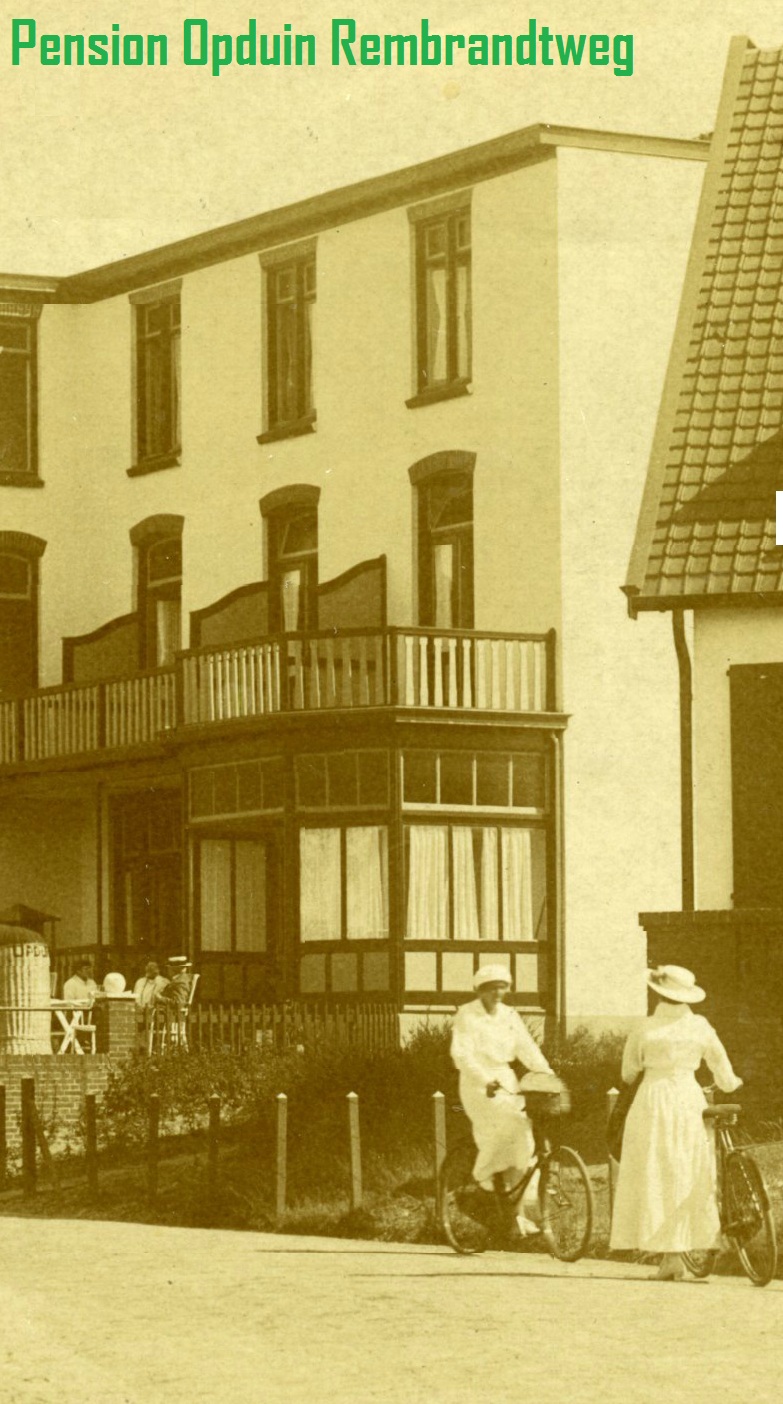 Het heette in het begin“Pension Noordwijk“, maar “Opduin” kon natuurlijk ook ( alles stond hier ‘op duin’). Het is een verstild beeld van de oude wereld, zomer 1914. Daarna zou alles anders worden (in Nederland iets later dan elders).