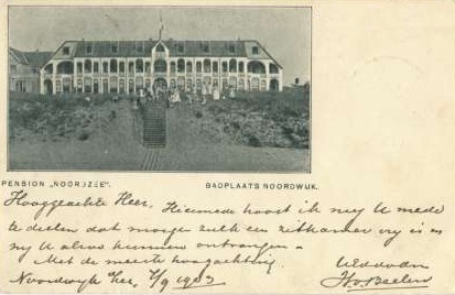 Het pension was bij wijze van spreken nog maar net uit de verf, want er was door architect H.J. Jesse aan gebouwd van 1899 tot 1901. Hij deed dat in opdracht van Willem van Beelen, een veelzijdig man: allereerst omdat hij als Katwijker van geboorte naar Noordwijk gekomen was en daar een bloeiende bomschuitenrederij bestierde (hij was de laatste reder van Noordwijk). Hij zag met vooruitziende blik dat er weinig toekomst meer zat in de bommen en stichtte Pension Noordzee, in die tijd een ambtieus project. Hij was later ook nog wethouder van de gemeente Noordwijk en alles bij elkaar een cruciaal figuur in de ombouw van Noordwijk van vissersplaats naar badplaats. Hij schreef op 7 september 1903 een kaartje naar Breda: