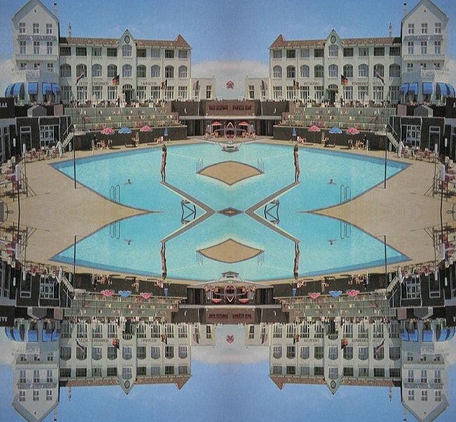 Grappig bewerkt die foto! Mooi zwembad ook :).