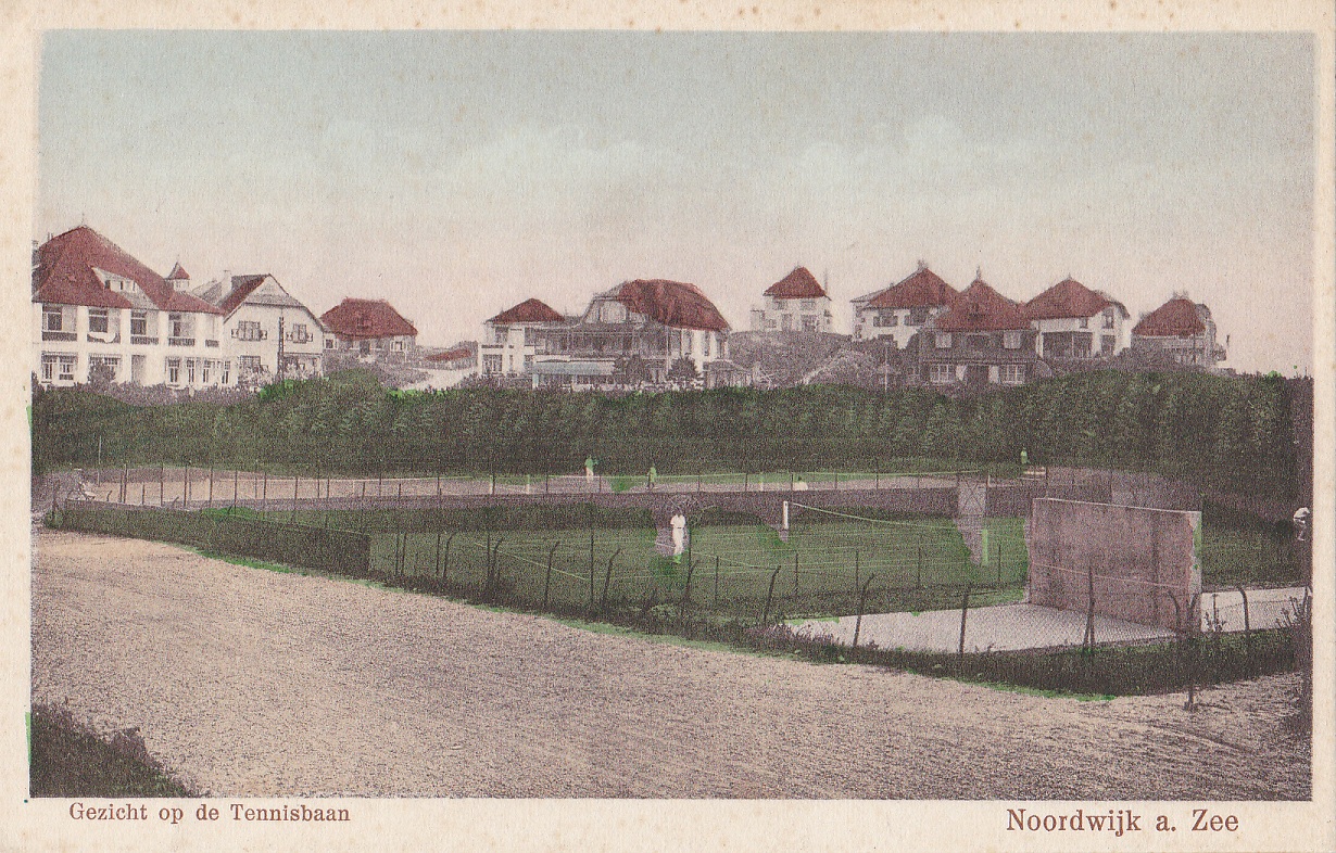 Ik kende de Casiono Tennisbanen alleen maar als die stoffige gravelbanen. Dat kleiige gruis, dat overal aan je aanvankelijk smetteloos witte tenniskleren en -schoenen ging zitten. In de overlevering lezen we dat het om ‘lawn-tennisbanen’ ging, zonder dat je ooit in kleur zicht kreeg op dat groene gras, dat er dan wel moest liggen. Hier hebben we er ééntje, smetteloos witte kleding op smetteloos groen gras.