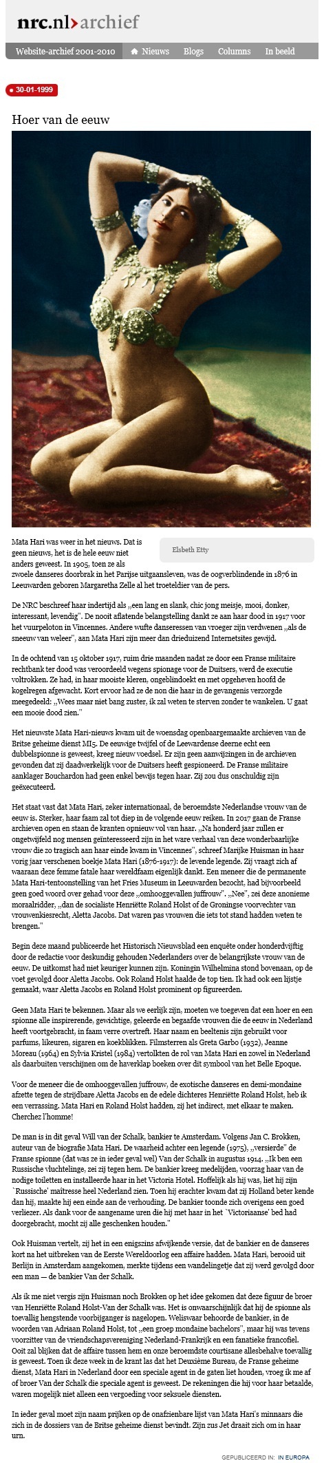 Will werd in 1999 door Elsbeth Etty in de NRC getraceerd als één van de minnaars van de befaamde en bloedjesmooie spionne Mata Hari (voor minder deed hij het niet). Het is een mooi verhaal dat het verdient om nog eens onder de stoflagen van het overigens prachtige NRC-archief vandaan te worden gehaald. Bij deze.
