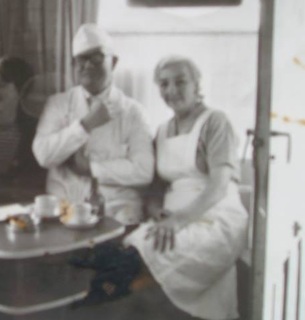 En om het helemaal compleet te maken een (vage) foto van Ome Henk Koelewijn en zijn vrouw Tante Riek, die “De Punt” uitbaatten in mijn tijd. Lieve mensen, lekker ijs (de foto heb ik gejat van “Je bent een Noortukker als”):