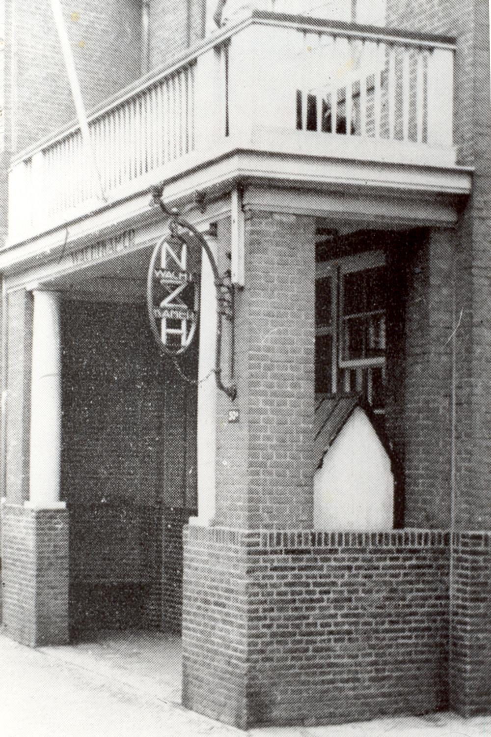 Wat dat duivenhok of die brievenbus daar doet met dat schuine dakkie weet ik niet. Vaag heb ik de herinnering dat het hier zo’n Rode Kruis Bus betreft, waarin je boeken en tijdschriften kwijt kon voor de bedlegerige medemens. Maar dat weet ik niet zeker.