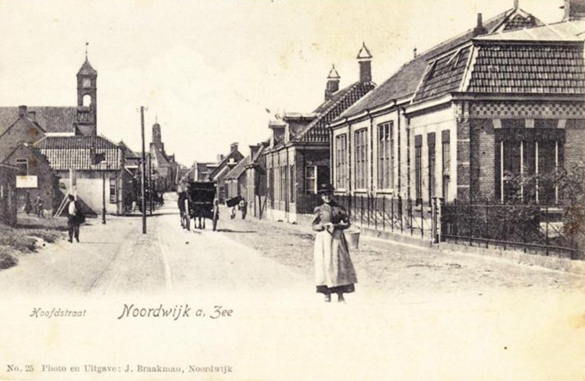 Het is de Kop van de Hoofdstraat, die toen misschien nog Dorpsstraat heette. Er bestaan veel foto’s van deze plek, maar die vrouw midden voorin was nog niet langsgekomen. Ze maakt een prachtig plaatje. Verbeeld ik het me of zijn daar links de voorbereidingen getroffen voor het bouwen van de nieuwe winkel van Drogisterij Duyster? In de volksmond later “De Punt” naar de gelijknamige ijssalon, één van de meest markante gebouwen van Noordwijk ongetwijfeld. In die zin is dit meer dan dan een historische foto. Die mevrouw vooraan was getuige van een soort eerste steenlegging.