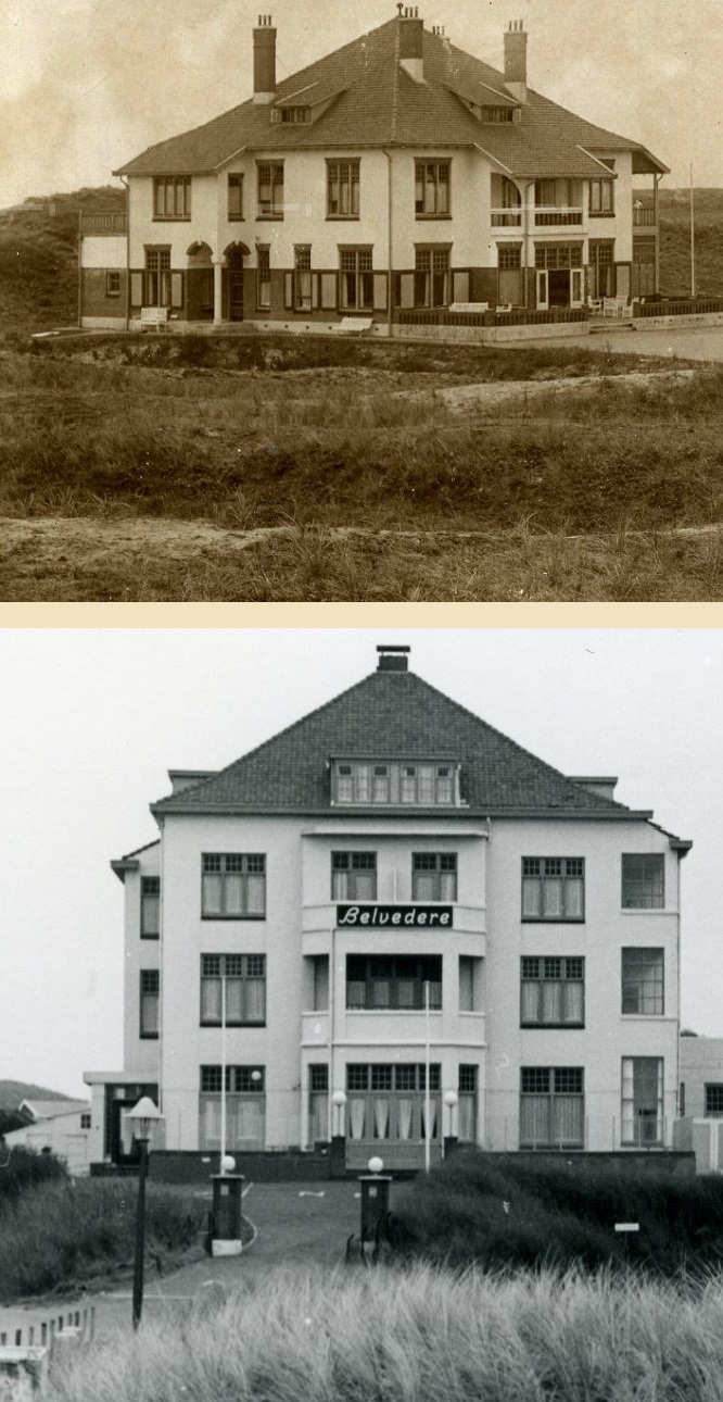 Zie veel foto’s van de buitenkant, maar volgens zeggen was er binnen een wand geschilderd met uitzicht van Noordwijk. Heeft iemand die foto?