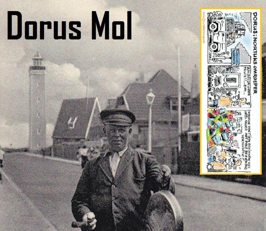 NOTA BENE Klaas attendeert mij op een figuur uit Kuifje’s “De Geheimzinnige Ster” die als doemdenker en valse profeet het einde van de wereld verkondigt, eveneens gewapend met een gong, net zoals Dorus. Maar Dorus was bepaald geen doemdenker en al helemaal geen valse profeet 🙂