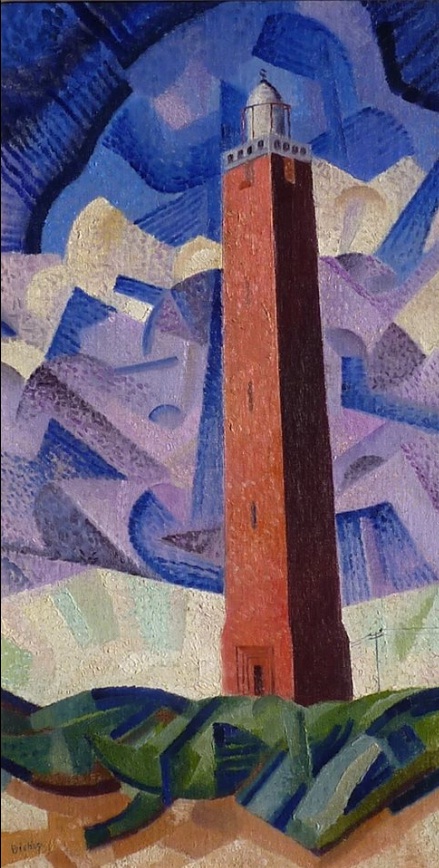 Herman Bieling (1887 – 1964) was een Nederlands schilder, graficus en beeldhouwer. Hij volgde zijn opleiding aan de Academie van Beeldende Kunsten te Rotterdam. Hij was tussen 1917 en 1927 lid en medeoprichter van De Branding uit Rotterdam, een avantgardistische groepering van kunstenaars. In die periode maakte hij veel kubistisch werk. Onderwerpen waren landschappen, rivier- en zeegezichten, stillevens en personen. In die periode verbleef hij iook enige tijd in Noordwijk en daar maakte hij dit schilderij van de nieuwe vuurtoren, die net gereed gekomen was. In baksteen nog, die witte pleisterlagen van nu dateren van later. Het schilderij is recent als nieuwe aanwinst opgenomen in de collectie van het Museum Oud-Noordwijk.
