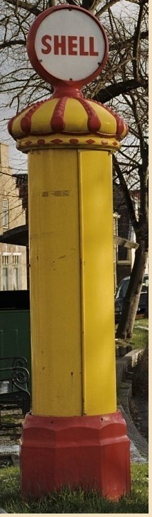 Volgens mij stond hij daar voor reclame van Shell, omdat bij de garage van het Palace hotel wel een echte pomp stond.