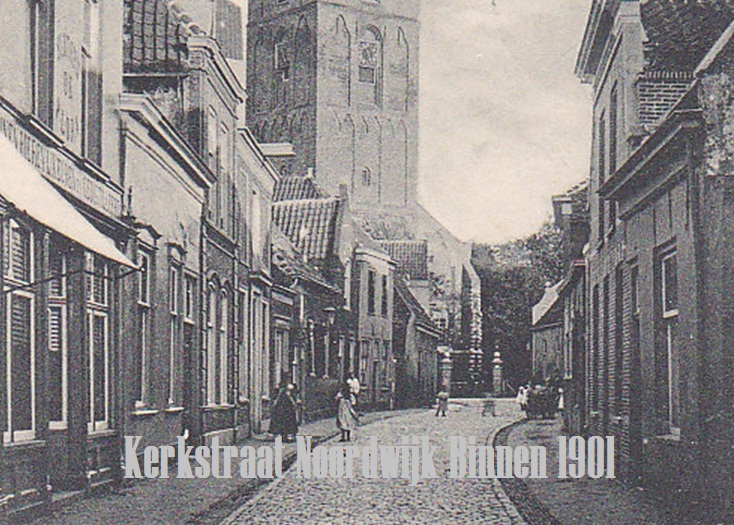 Een stemmig beeld uit de prachtig bestrate Kerkstraat rond 1901. Spelende kinderen, niet meer dan dat. En het pand links op de voorgrond, waarop ik alleen de naam ‘Flora’ kan lezen. Helaas niet meer dan dat.