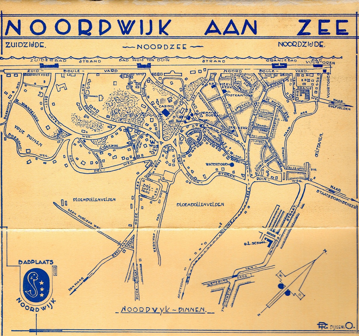 Mij ontbreekt het perspectief van waaruit ik beide villa’s een beetje kan thuisbrengen. Ik zou denken dat ze met de andere kant richting boulevard stonden gericht, maar dat strookt weer niet met dat huisje links achteraan. Is dit wel de Oranjeweg in Noordwijk aan Zee, of moeten we zoeken naar een andere plek (in de Zuidduinen bijvoorbeeld)? Ik zet de oude kaart er nog maar eens bij (2x klikken), maar zelfs dan kom ik er nog niet goed mee uit.