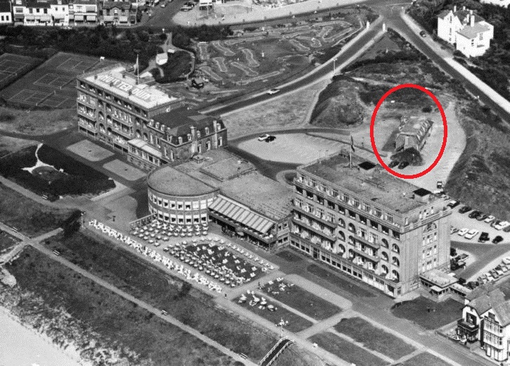 Afgaande op een paar omgevingsindicatoren (tennisbanen, midgetgolf) dateert dit beeld van Huis ter Duin van ergens uit de late jaren vijftig van de vorige eeuw. Ik moet dit beeld zo ongeveer gekend hebben, zoals het hier was. Alleen dat omcirkelde pand op het terrein van Huis ter Duin, dat herken ik helemaal niet. Wie wel?