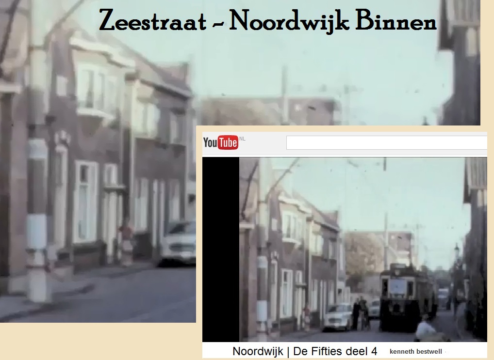 De tram kwam vaak door de straat, minimaal 2 van deze monsters per uur. In een filmpje van Kenneth Bestwell tref ik dit beeld daarvan aan. De tram op weg naar Zee, ter hoogte van het huis van mijn ouders, ingeklemd tussen de panden van Van Abswoude en Bertram ter linkerzijde. Rechts op de voorgrond de bollenschuur vanVan Dobbe de Bruyn. Iedereen moest opzij voor het blauwe gevaarte, de straat was toch al niet zo breed. Grote betonnen palen als masten voor de bovenleiding. Van het hele beeld op de foto is anno 2014 helemaal niets meer over, iets meer dan 50 jaar na het moment dat dit beeld geschoten werd.