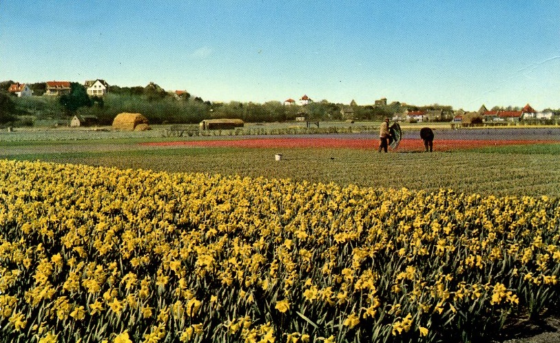 Weer zo’n magnifiek ingekleurde foto met een wijde blik op Noordwijk Binnen vanaf de Koepelweg, schat ik in. Een soortgelijk beeld in zwart-wit is toch iets minder.