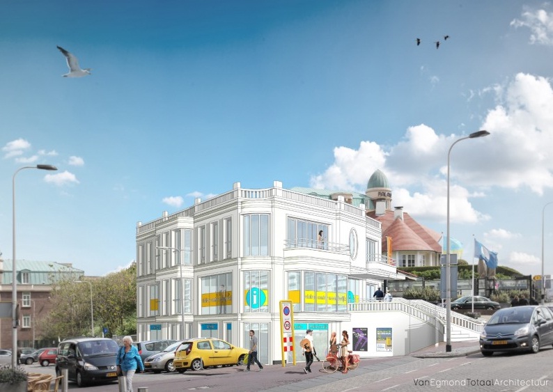 Ervoor in de plaats komt een pand, dat ontworpen is door het Noordwijkse architectenbureau Van Egmond. Ik weet nog niet precies wat ik van het ontwerp moet vinden, maar op die postmodernistische ballustrades en trapleuningen na, belooft het wel iets moois. Ik vraag me overigens wel af wat er overblijft van de ambitie om in Noordwijk vooral de ‘Normandische Stijl” te hanteren bij het neerzetten van nieuwe, gezichtsbepalende gebouwen. Het ontwerp geeft daar wat mij betreft nauwelijks, zo niet helemaal geen blijk van. Het gaat ‘visitors centre’ heten, het begrip ‘VVV’ is blijkbaar al net zo verouderd als het huidige gebouw.