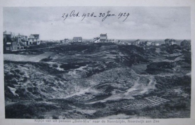 Pension “Sole Mio” stond nog wel een stukkie van het strand en de zee af, maar toch. Toch kon je met recht zeggen dat je uitzicht op zee had, zoals deze foto bewijst. Toen kon dat allemaal nog wel. Nu waarschijnlijk helemaal niet meer. Misschien bestaat “Sole Mio” zelfs helemaal niet meer. Ik moet bekennen dat ik dat niet eens weet. Moet weer eens gaan kijken. En nóg een blik vanuit datzelfde Sole Mio, een stukkie meer naar rechts: