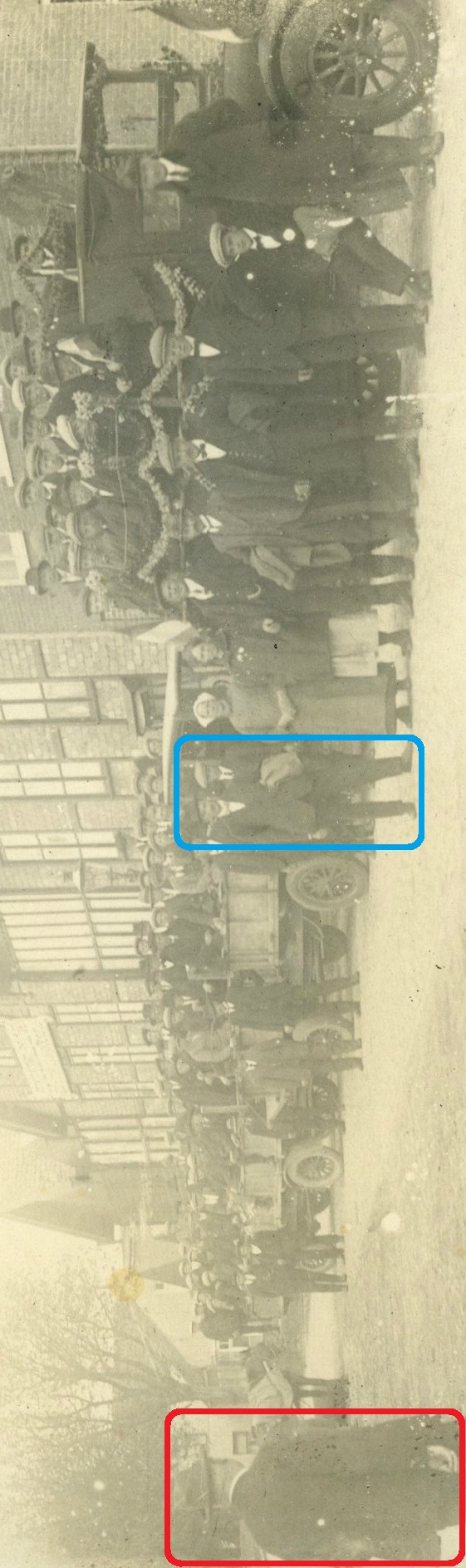 Siem Knijn himself staat helemaal links – in het rode kader – de troepen te inspecteren. Onder hen mijn opa, die het bij dit bedrijf nog zou schoppen tot schuurbaas. Knijn staat erbij als een echte heerser, een Capo di Tutti Capi. Trots als een pauw. Als ik mijn opa eruit zou moeten halen, dan ga ik voor de man in het blauwe kader. Opa was toen 40 jaar. Hij had toen nog 53 jaar te gaan. Het dagje uit hattie dus wel overleefd.