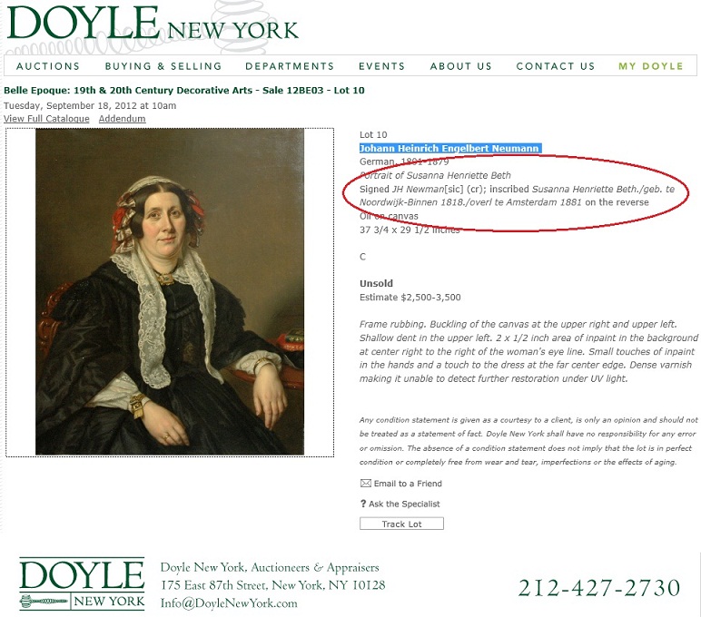 En dan opeens dit: in 2012 dook bij Veilinghuis Doyle in New York dit schilderij op in de verkoop. Geschatte opbrengst tussen de $ 2500 en $ 3500.
