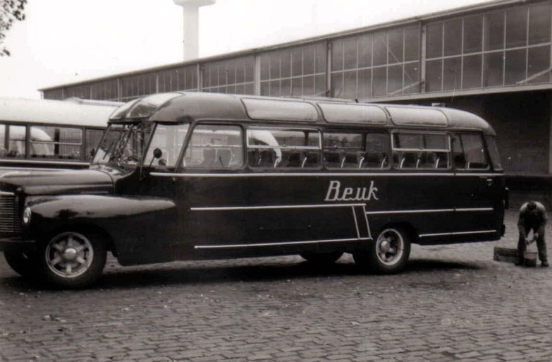 Het wagenpark van de firma Beuk door de jaren heeb laat een groot scala aan verschillende merken en typen zien. Dit is er zo maar eentje uitgeplukt uit een lange reeks. Welke merk en welk type is me verder onbekend, maar wellicht heb ik er wel eens ingezeten met een schoolreisje of anderszins.